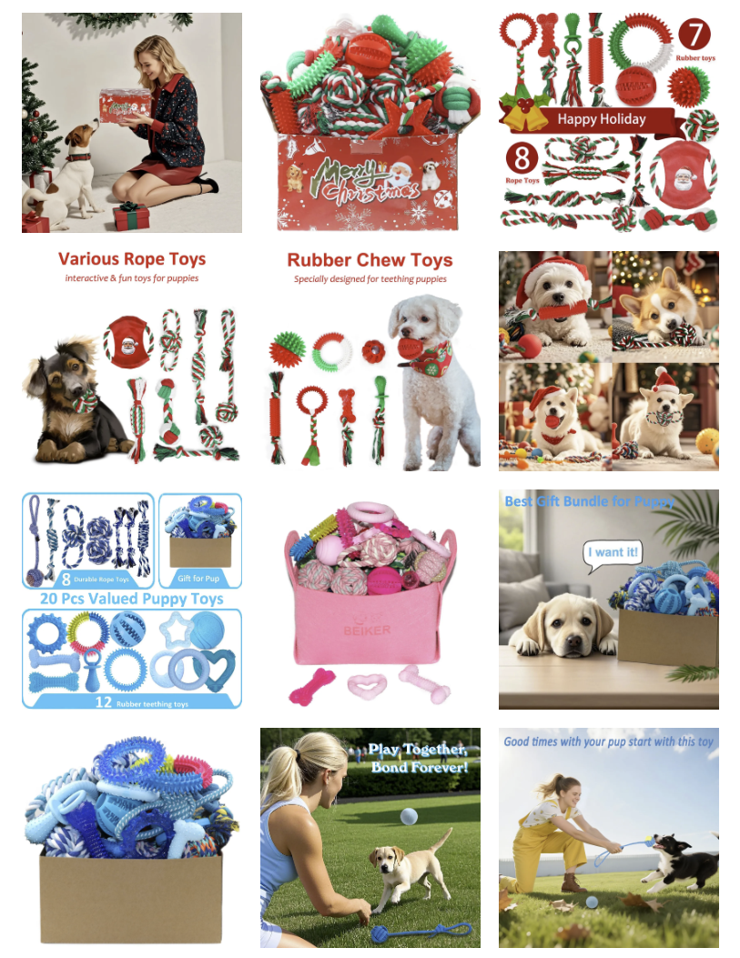 Complete Avoidance (Strongly Recommended): Do not include any food or treats in the gift box. This is the safest, simplest, and lowest-cost strategy. Position the product as a pure play box of "toys and apparel," fundamentally eliminating all food compliance risks. Your marketing copy, like in the Christmas_03.jpg image, can focus on physical functions like "Mental Stimulation" and "Clean Teeth," rather than treat rewards.
